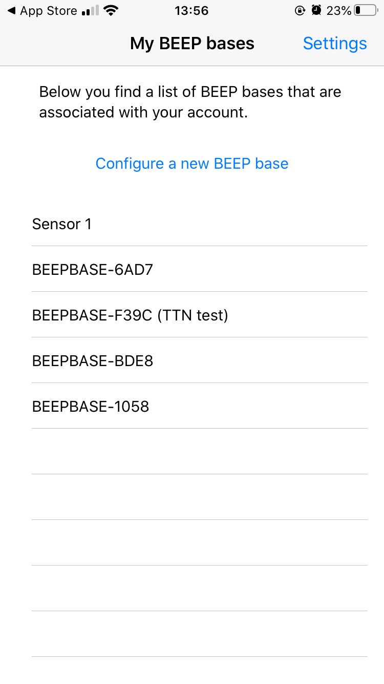 - Selecteer de BEEP-basis die u wilt configureren in het hoofdmenu