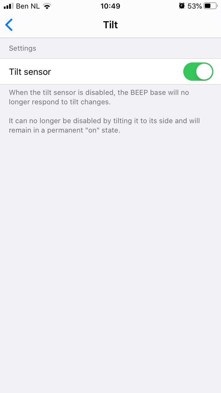 - Voor Android update je eerst de firmware van de BEEP basis waarna je de kantelsensor aan / uit kunt zetten .