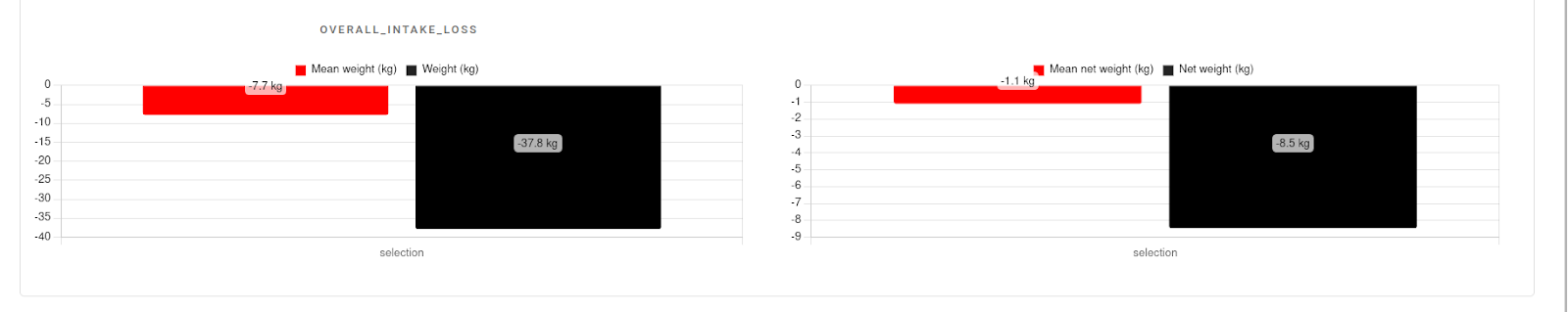Onder de grafieken kun je de algehele gewichtsverandering of -toename voor de geselecteerde periode vergelijken.
